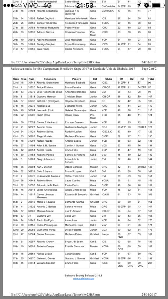Coordenadoria da Classe Snipe em São Paulo
