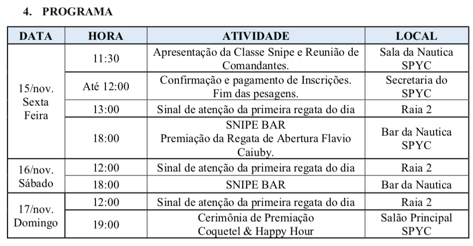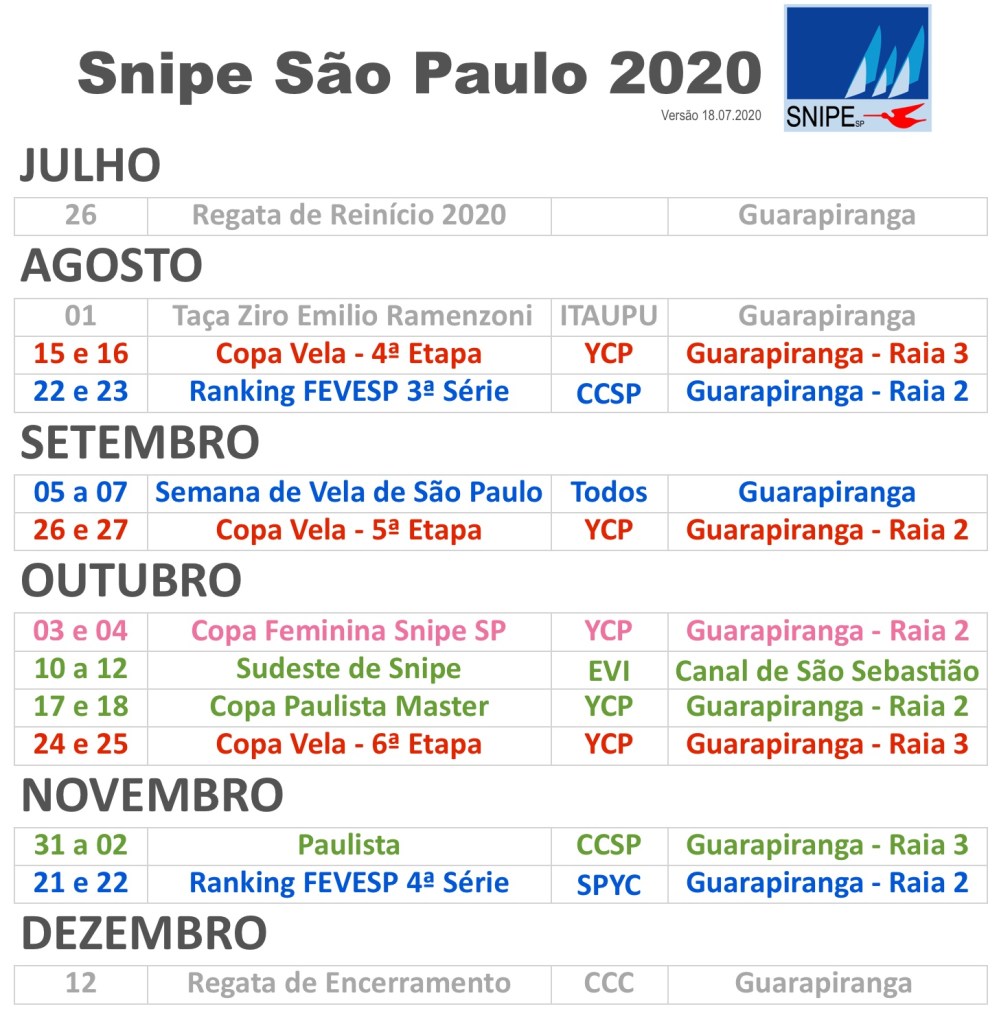 Atualização do calendário da classe snipe São Paulo para o 2º semestre!