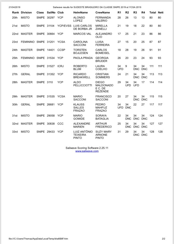 Dias lindos mas com pouco vento. Conseguimos completar 4 regatas e os resultados estão na súmula a seguir.